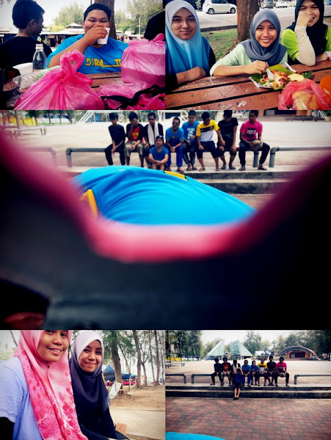 so basically, the second day is the only day we could fill it with activities. tapi pagi tu kami semua menghadapi kesulitan sedikit yang mana melibatkan kereta. nothing much, tapi Alhamdulillah takde apa pun. pagi tu Nabila, Mira, Ainie dan Fana ikut Bob ke pasar untuk beli ayam dan sebagainya untuk bbq malam nanti. so yang lain tu siap mambuat breakfast di rumah. roti telur je pun dah cukup. tapi ni pun untuk jadi bekal pergi piknik di teluk kemang. around 11, kami bertolak ke sana. buat aktiviti masing-masing. photoshoot bagai dan yang penting persembahan oleh Aidyl dan Nasar. they're like awesome. Nasar ni tak betul, tak tau malu orangnya. hahah.